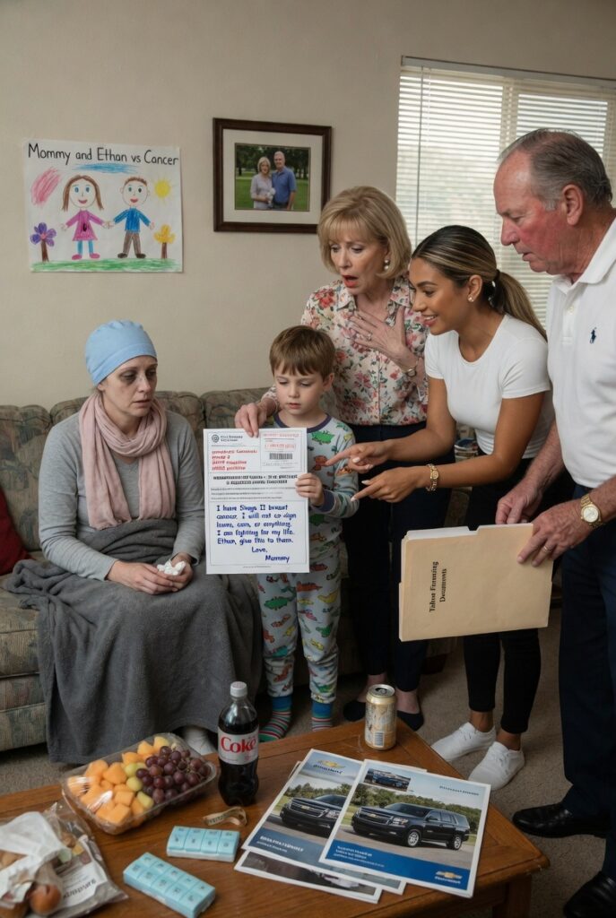“You came here,” I said, each word a slow, deliberate drop of acid. “Into the house of a woman who is currently losing her hair and her white blood cell count… to ask for a co-signature on a luxury SUV?”